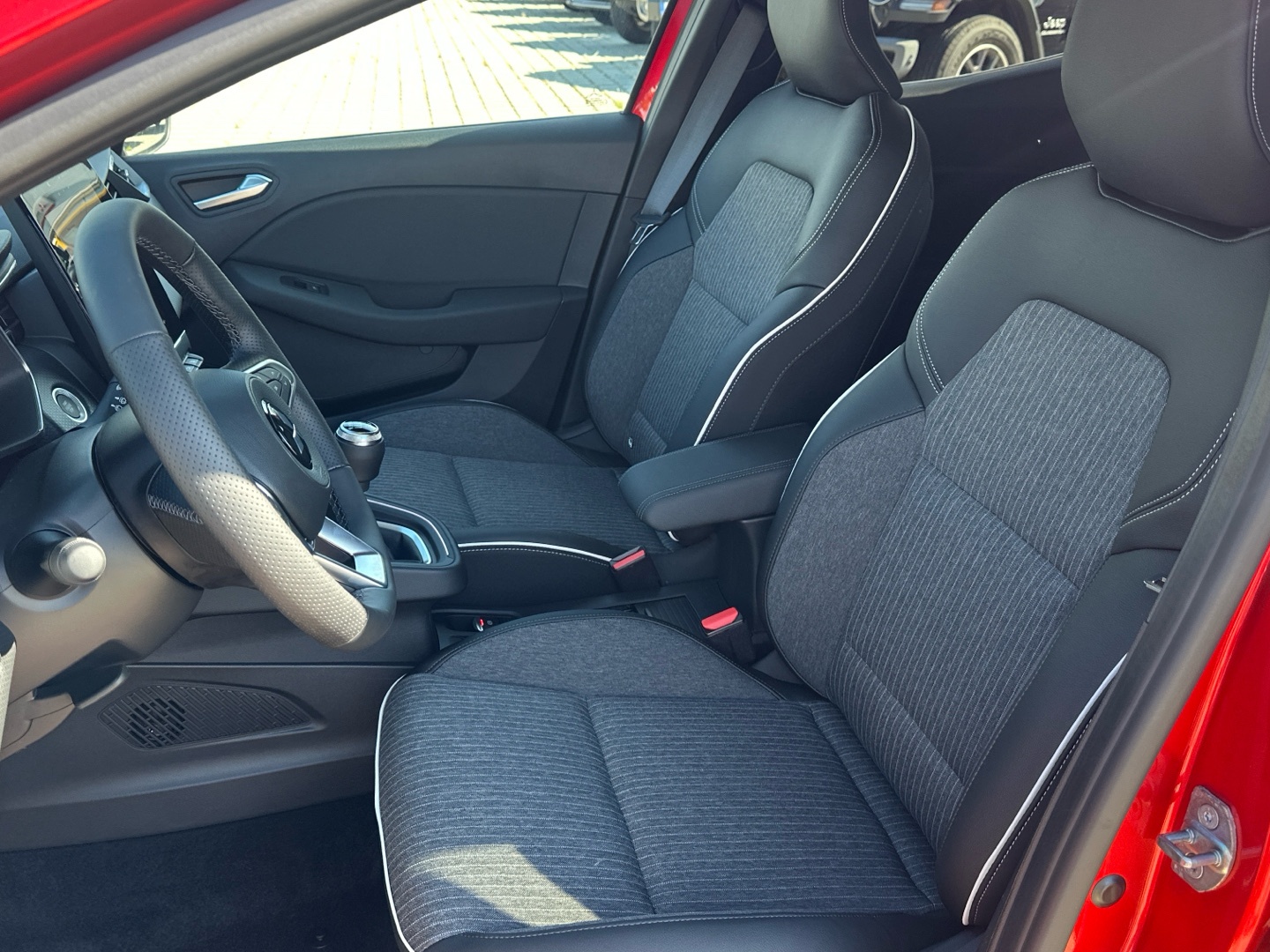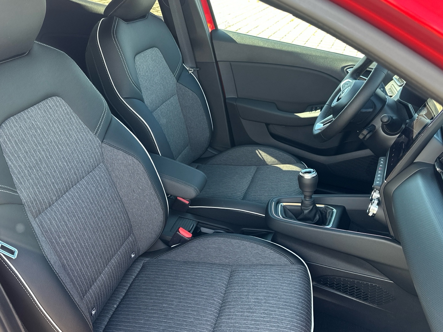 - Kůží obšitý volant a hlavice řadící páky