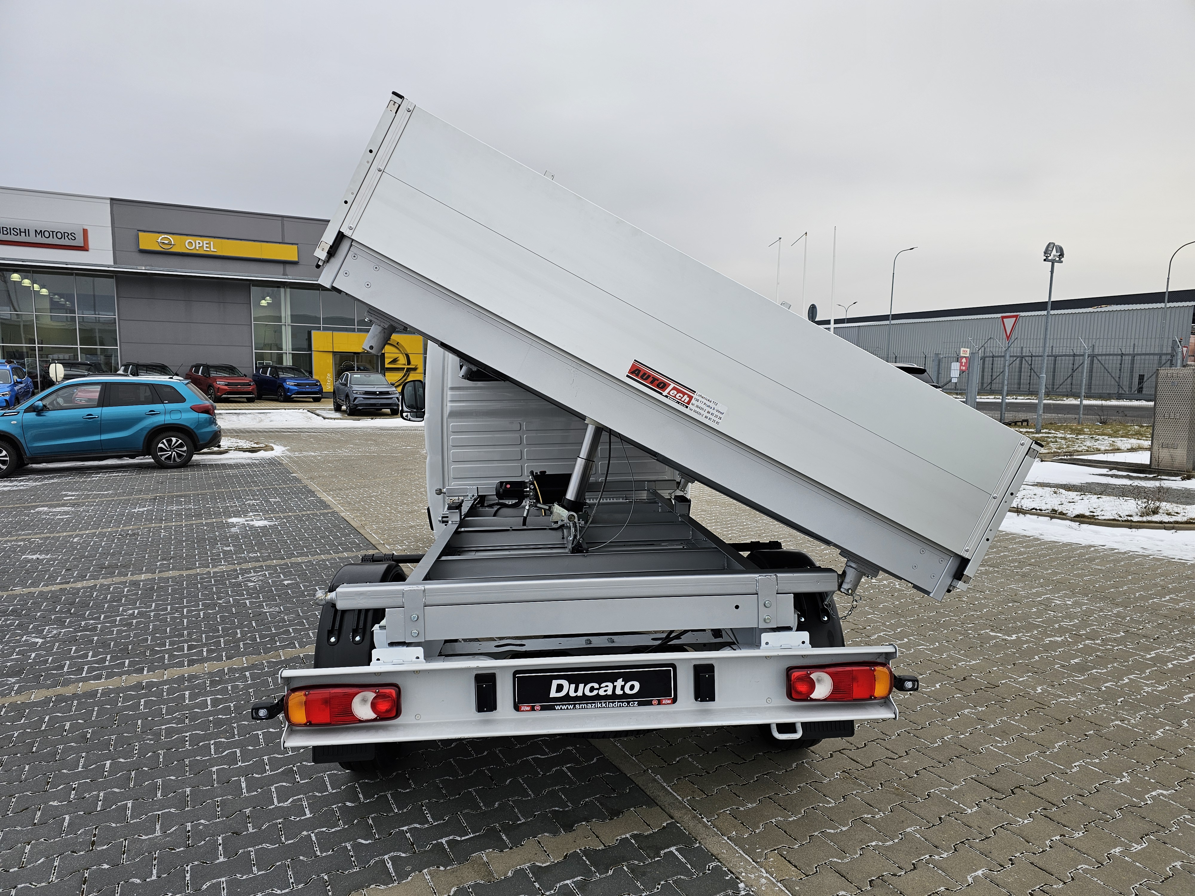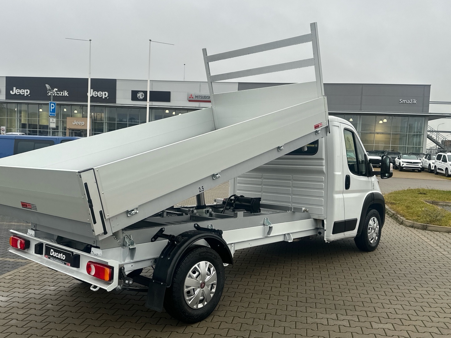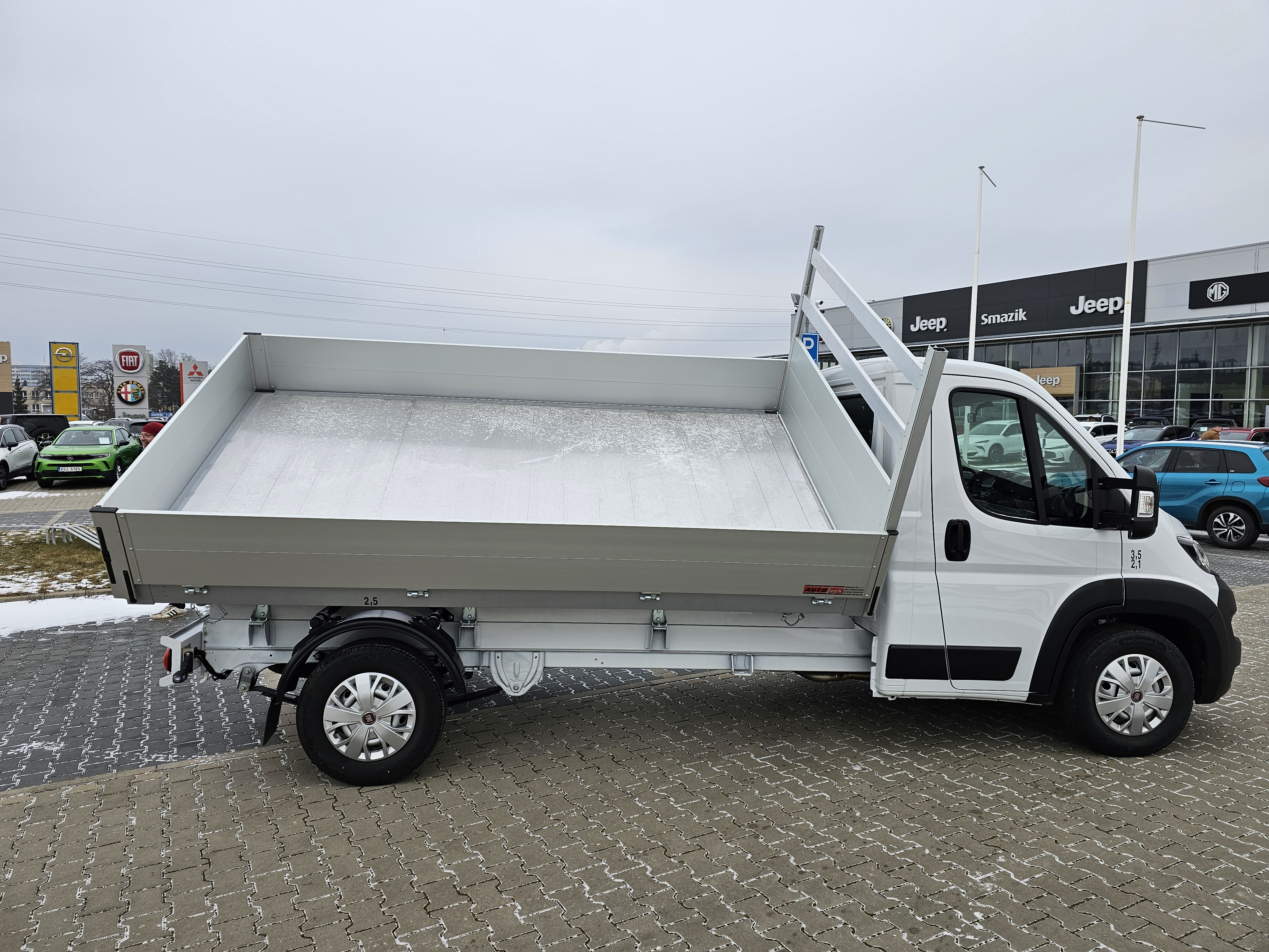Třístranný sklápěč - rozměry v mm(vnější 3650 x 2100, vnitřní 3950 x 2040 x 400) Hydraulický teleskopický válec, elektrické ovládání sklápění z kabiny vozu na kabelovém ovladači, záchytné lano, ochranný rám za kabinou hliníkový, bočnice sklopné, zadní čelo sklopné a výkyvné, rám korby hliníkový, podlaha - hliníkový plech, podpěra korby ve zvednutém stavu Skladové vozidlo, ihned k odběru!! Nový, nejetý vůz, ZÁRUKA NA VŮZ SPUŠTĚNA 07.08.2024, ZÁRUKA 5 LET (od 07.08.2024 do 07.08.2029) / 200 000 KM!! Registrace 21.01.2026. Údaje obsažené v této kartě mají informativní charakter. Tato indikativní nabídka není nabídkou ve smyslu § 1731 nebo § 1732 občanského zákoníku, ani se nejedná o veřejný příslib dle § 1733 občanského zákoníku. Z této indikativní nabídky nevzniká nárok na uzavření smlouvy. Vyhrazujeme si právo na opravu chyb a změny cen. Tiskové chyby a změny ve vyobrazení vyhrazeny. Chyby v popisu vyhrazeny, platí vždy aktuální stav při prohlídce.