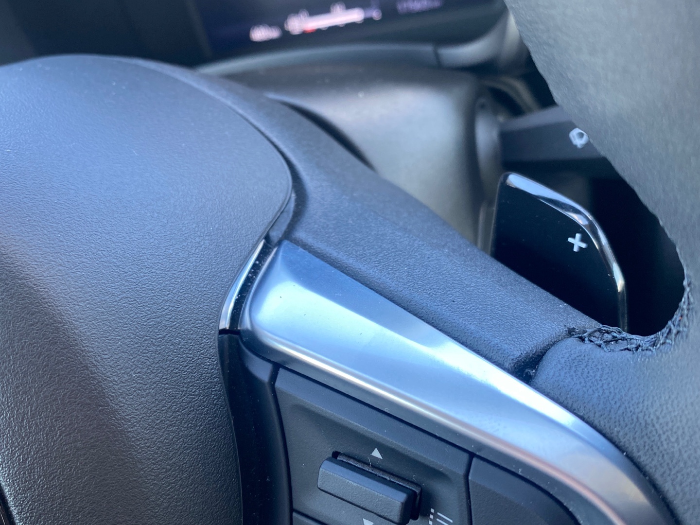 - Kůží obšitý volant a hlavice řadící páky