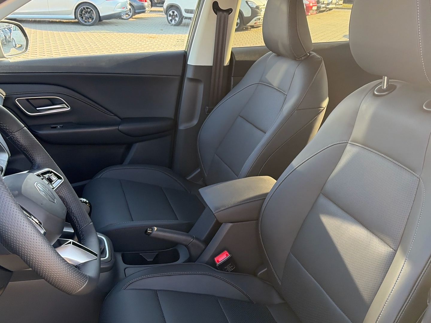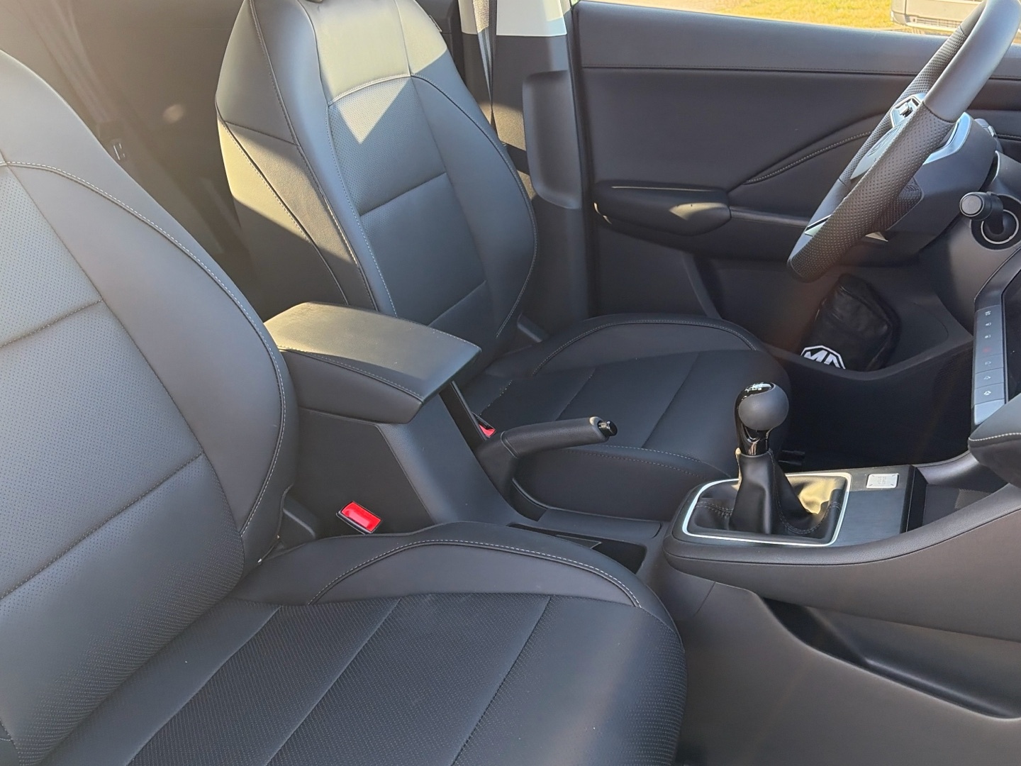 - Kůží obšitý volant a hlavice řadící páky