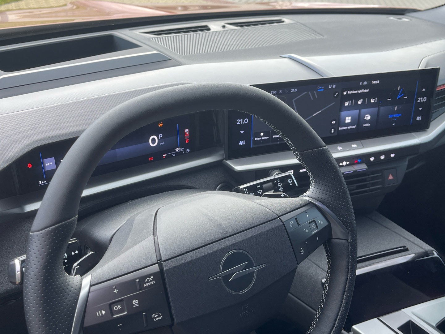 - Kůží obšitý volant a hlavice řadící páky