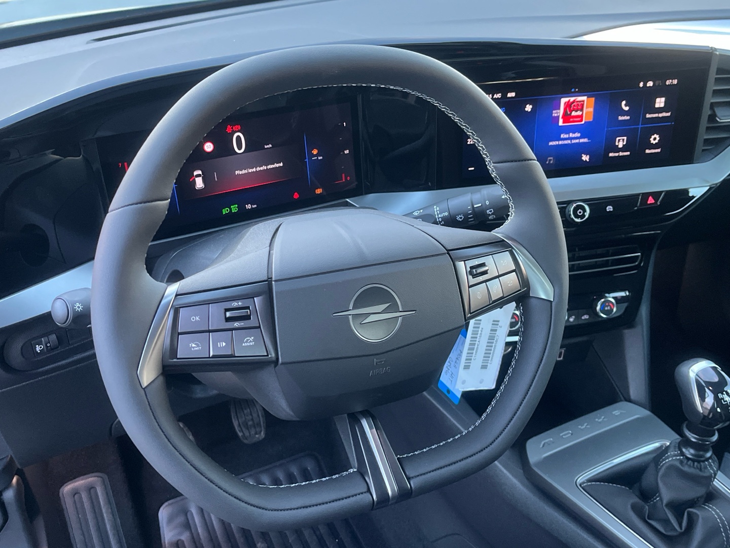 - Kůží obšitý volant a hlavice řadící páky