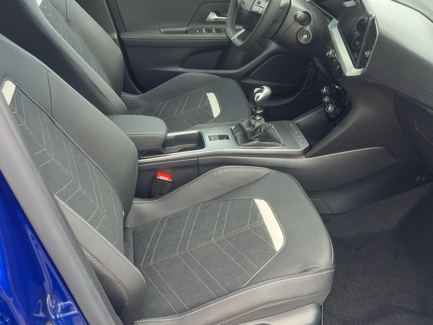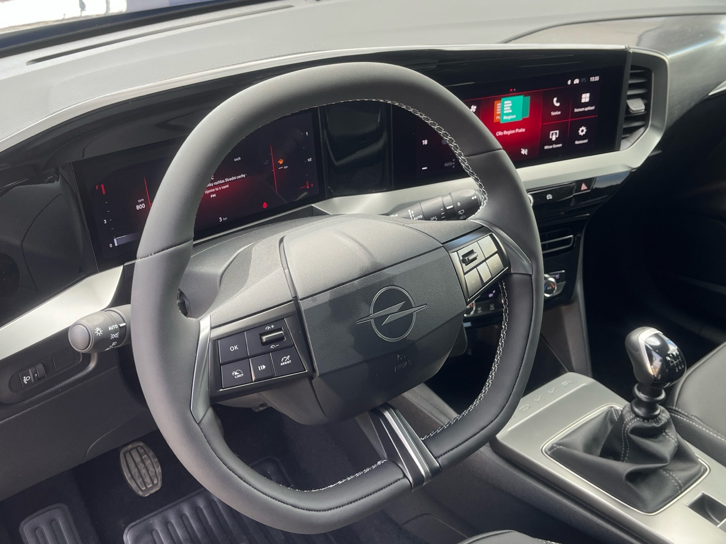 - Kůží obšitý volant a hlavice řadící páky